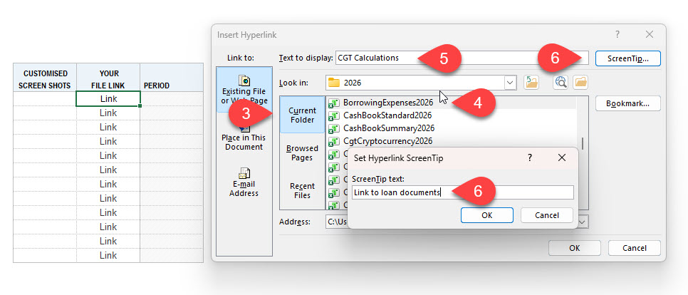 - Enter a screen tip; and