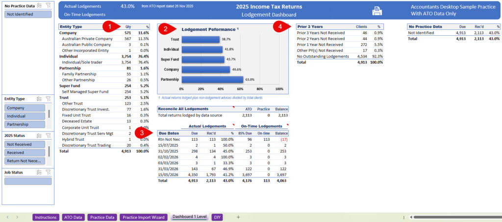 LODGEMENT DASHBOARD RETURNS – ATO AND PRACTICE DATA