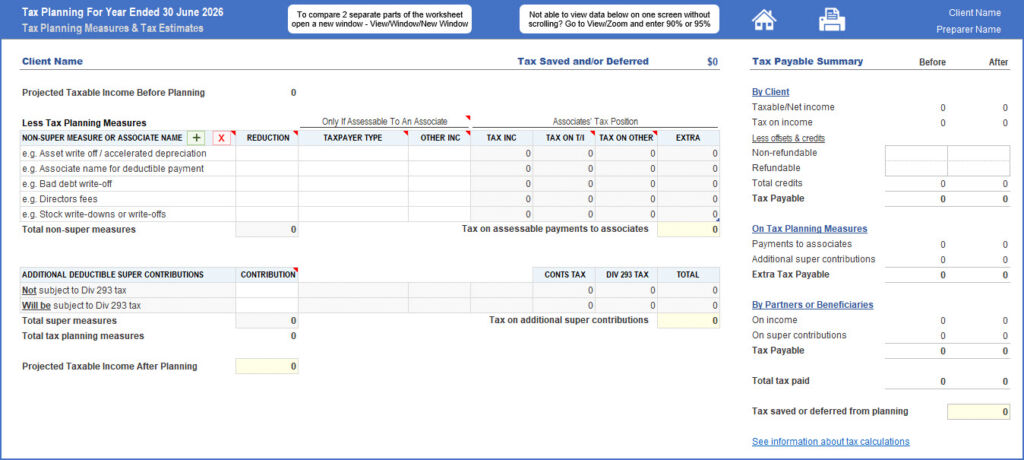- Apply tax planning measures including deductible payments to related parties. Calculate the additional tax payable by those taxpayers to see the overall tax saved by the client group.