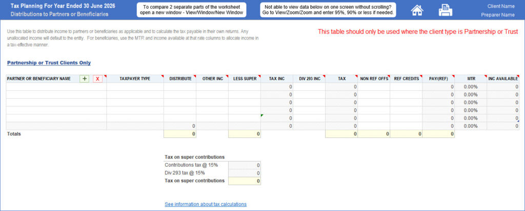 - Calculate projected marginal tax rates (MTRs) and income available at those rates for partners and beneficiaries; and