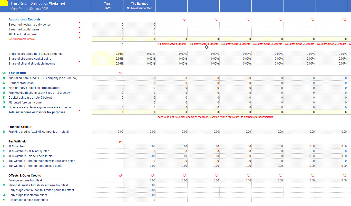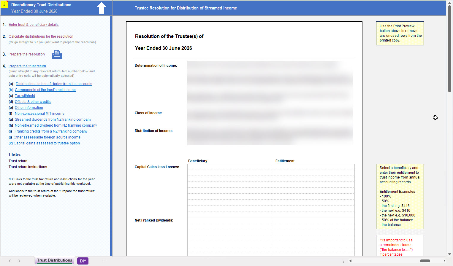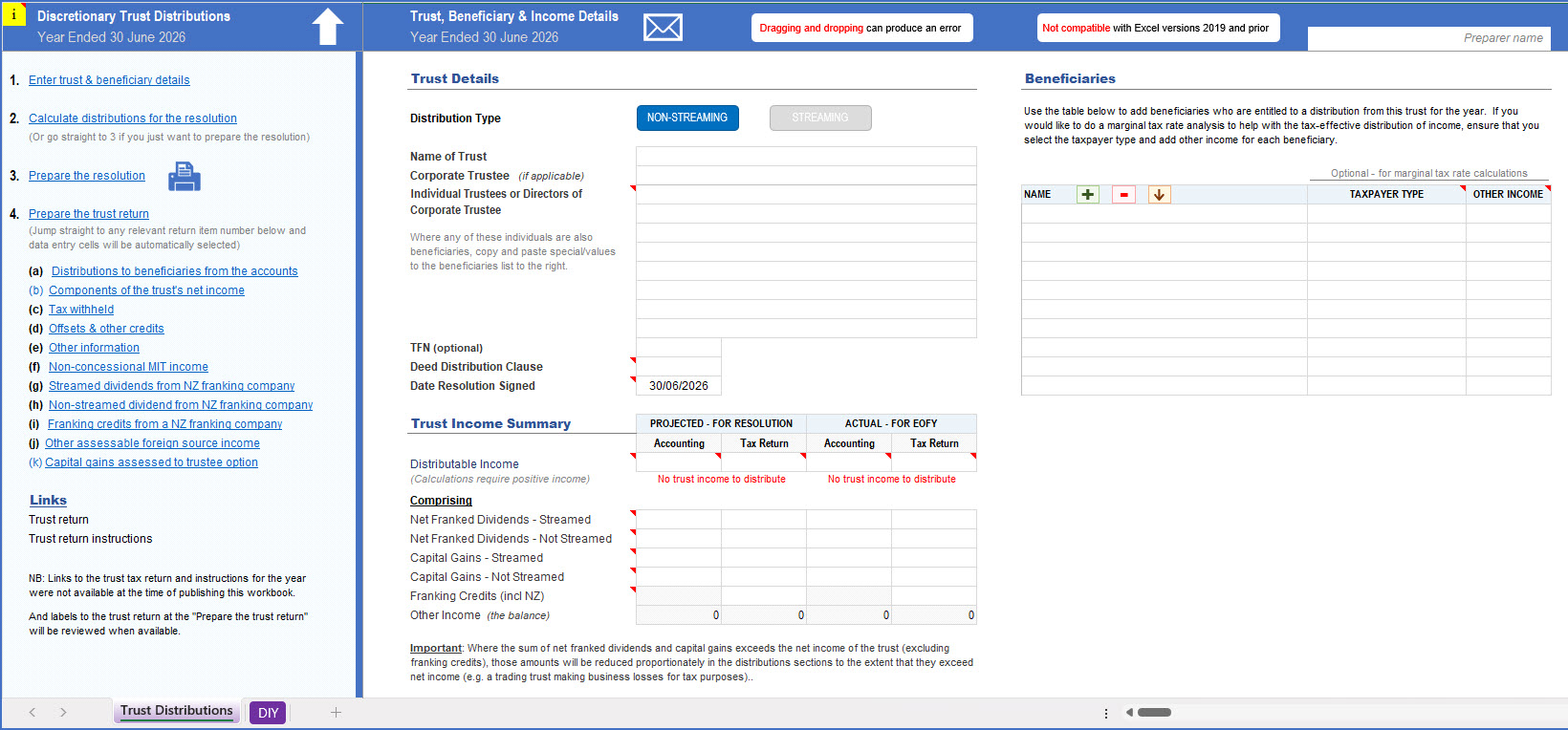 Save precious time and use our trust distribution workbook for your discretionary trust distributions for the year ended 30 June 2026.