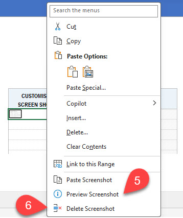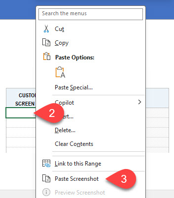 - Right-click and Paste Screenshot;