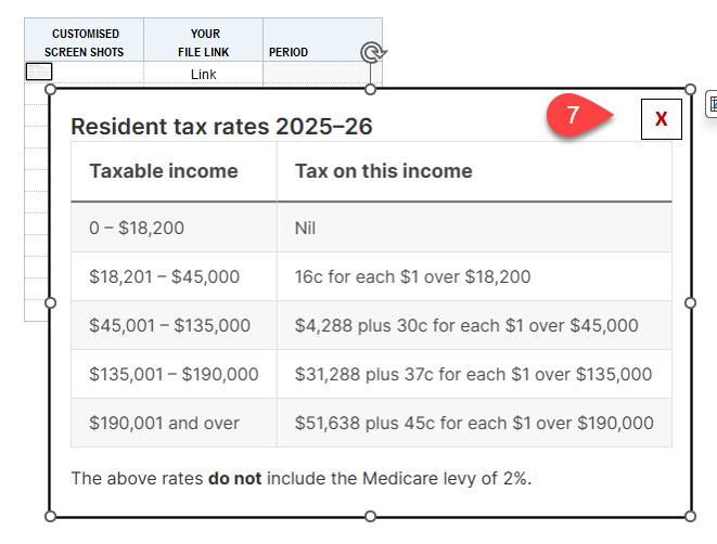 We are progressively adding a customised screenshot view macro to some of our worksheets with limited screen space. This will allow you to insert an image into a cell and preview it in full-size, regardless of length.